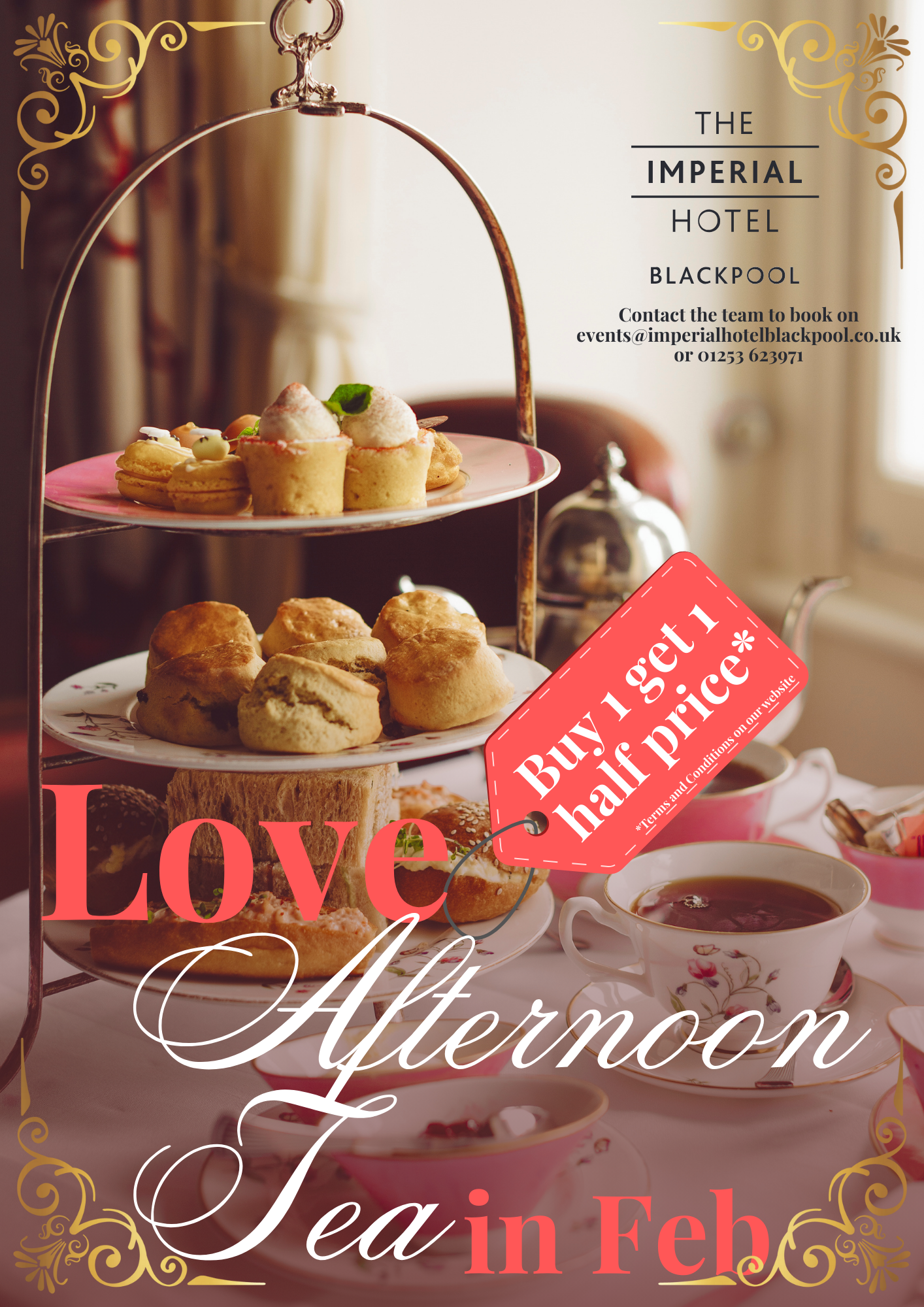 Celebrate Valentine’s Day this February with a delightful Afternoon Tea at the Imperial Blackpool. Indulge in a tempting selection of freshly prepared sandwiches, sweet treats, and warm scones, perfectly paired with tea or coffee. Buy one Afternoon Tea and enjoy the second at half price - because great moments are better when shared.